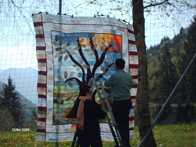 Per fortuna il tempo è stato dalla nostra (a differenza di oggi!!) e ciò ha consentito alla mitica streghetta di esporre all'aperto tutte le foto delle coperte realizzate dal 2004 ad oggi ma non solo... alcune coperte erano presenti "di persona" e abbiamo così potuto ammirarle dal vivo. Non vi dico l'emozione ....